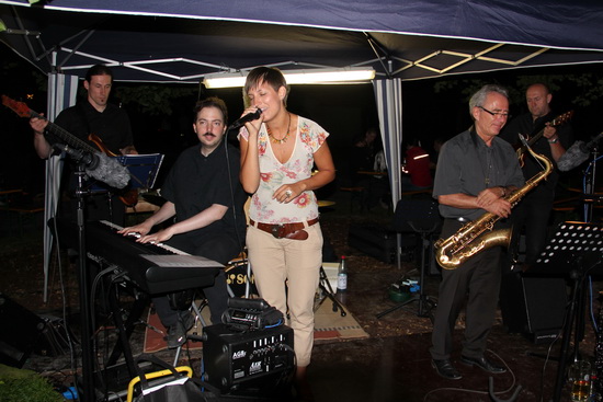 Zahlreiche Schmankerln und ein sehr umfangreiches Salatbuffet waren das kulinarische Highlight dieses Abends. Neben den üblichen Grillgerichten wie Steaks, Grillbauch und Ripple wurden die Gaumen der Besucher mit Pfannengyros, Lammkoteletts, Bratwürsten mit Bärlauch und speziell zubereiteten Putensteaks in Sesam-Curry-Marinade verwöhnt. Eingebettet in der Natur und von der außergewöhlich schönen Landschaft wurden die Gäste in dieser lauen Sommernacht mit Jazzmusik vom Feinsten unterhalten. Die engagierte Gruppe "Blue Note Project" präsentierte Lieder von "Summertime" bis "Smooth Operator" und auch Zugaben wurden auf Wunsch der Besucher sehr gerne gegeben. Wobei Eines festzuhalten bleibt - nämlich dass es sowohl Zugaben für Franken als auch Zugaben für Oberpfälzer gab.