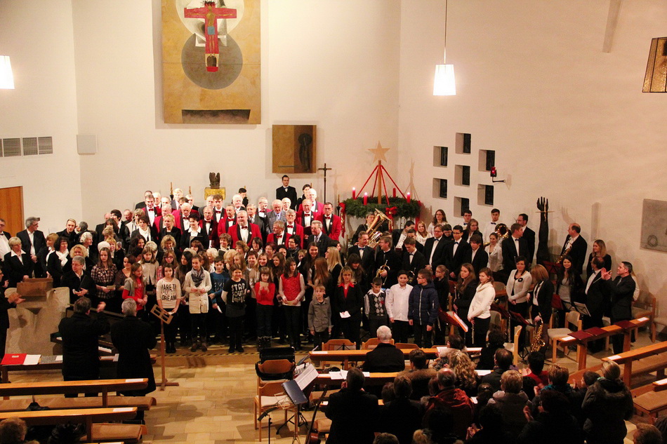 Das orchestrale Band zwischen den einzelnen Auftritten des konzertanten Nachmittags bildeten die Speichersdorfer Musikanten unter Leitung von Norbert Lodes mit meditativen und beschwingten Melodien wie „Pachelbel´s Canon", arrangiert von Steve Cortland und „a Christmas Ouverture" von Roland Kerner. Klanggewaltig und beschwingt ertönte gegen Ende „Cinderella´s Dance", von Kurt Gäble. Zum krönenden Abschluss stimmten Chöre, Orchester und Publikum ein in „Macht hoch die Tür".